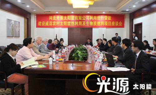 識別團(tuán)一行在河北省發(fā)改委外資處副處長史海峰、河北省財政廳涉外處副處長何貴滿、河北省新能源技術(shù)推廣站副主任王香雪及市直有關(guān)部門負(fù)責(zé)人的陪同下實(shí)地考察了光源公司威縣農(nóng)村太陽能熱利用及生物質(zhì)燃料項目。通過考察了解了太陽能采暖、太陽能熱開水系統(tǒng)的工作原理、項目周邊環(huán)境及使用情況,并對項目的具體情況展開了座談討論。光源公司副總經(jīng)理邵東坤就光源公司的基本概況、經(jīng)營情況以及世行貸款項目概況向識別團(tuán)進(jìn)行了匯報,識別團(tuán)針對項目的建設(shè)內(nèi)容、開發(fā)潛力、市場風(fēng)險等問題進(jìn)行了提問和討論。
