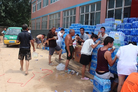 邢臺經(jīng)濟(jì)開發(fā)區(qū)東汪鎮(zhèn)景家屯村,是邢臺7.19洪水侵襲的重點(diǎn)村之一。從7月19日晚斷電斷水至今,水電供應(yīng)因施工難度大,至今仍未恢復(fù)。村民一日三餐,僅以礦泉水、方便面(干吃)充饑。
