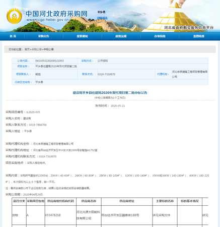 光源公司憑借完善細(xì)致的服務(wù)成功中標(biāo)建設(shè)局平鄉(xiāng)縣住建局2020年雙代項目第二批,這兩次連續(xù)中標(biāo)既是對光源高標(biāo)準(zhǔn)高質(zhì)量產(chǎn)品的認(rèn)可,這對光源來說既是難得的機遇更是嚴(yán)峻的挑戰(zhàn)。