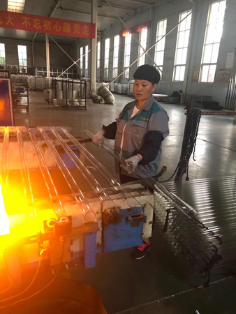 “五.一”這天,驕陽似火。室外溫度高達35度,真空管車間,在火考中作業(yè),工人們揮汗如雨戰(zhàn)高溫。他們的口號叫得響:寧流萬滴汗,不出一次品。