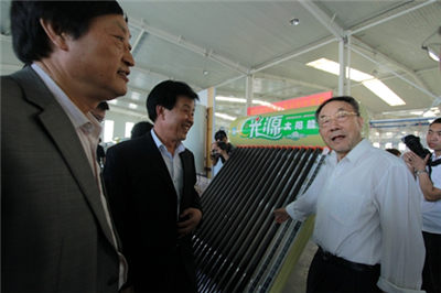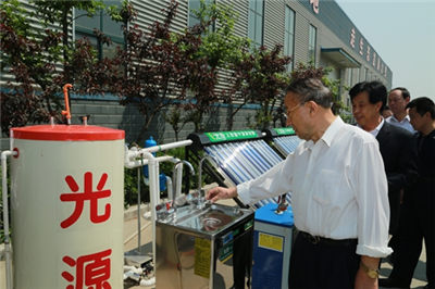期間,視察團領導在公司董事長李成斌等陪同下,先后視察了公司五連鍍全自動真空管生產線、臥式環(huán)戊烷發(fā)泡水箱生產線、全自動產品組裝車間等國內一流生產線,視察了單機、壁掛等太陽能產品成品庫,同時認真聽取了公司副總邵東坤匯報的關于公司生產和經營環(huán)節(jié)的現狀,和公司發(fā)展規(guī)劃,詳細詢問了公司太陽能熱開水工程業(yè)務研究和開發(fā)現狀。