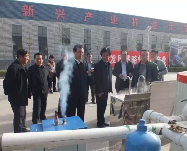 調(diào)研組先后考察了光源太陽能內(nèi)聚光減容太陽能中高溫集熱管、太陽能集熱管全自動數(shù)控五連鍍生產(chǎn)線、反向積放臥式發(fā)泡水箱生產(chǎn)線、超大恒溫熟化室,對光源太陽能中高溫利用項目成果高度評價。來到熱水器車間,看到熱火朝天的忙碌生產(chǎn)場景,全機械化,自動化制桶流水生產(chǎn)線,書記喜笑顏開。走出廠房,在光源開水機系統(tǒng)前,驚訝我公司在中高溫領域取得的成就,贊揚在這一領域光源太陽能已走在行業(yè)前列。聽到董事長李成彬先生對于光源先進的發(fā)展及今后的規(guī)劃,給予了高度的肯定,明確指出光源太陽能給邢臺其他公司樹立了榜樣,走科技創(chuàng)新,自主研發(fā)的路子,前途不可限量。希望光源公司不斷開拓進取,早日上市。